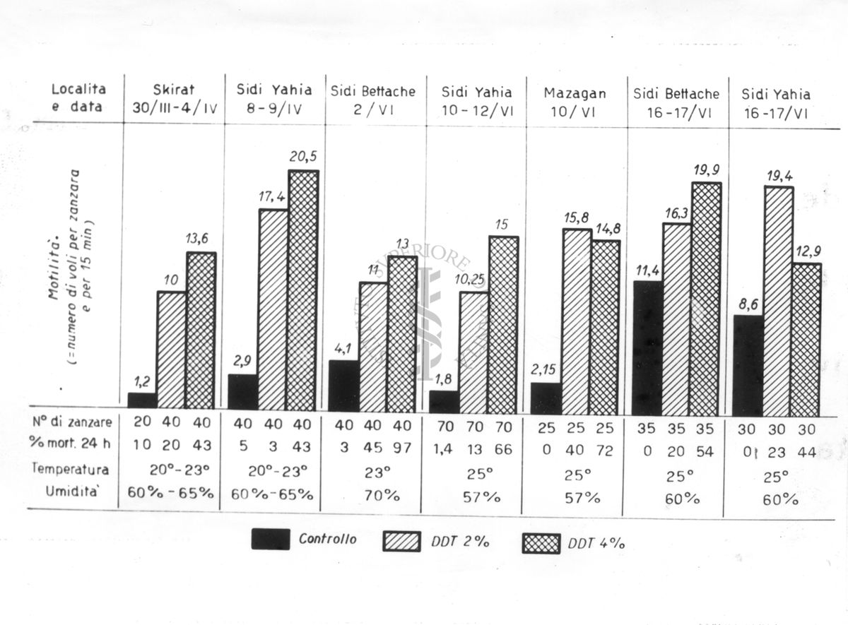Diagramma riguardante le esperienze sull'inabitabilità in presenza di insetticidi Anofeles Labranchiae in Marocco